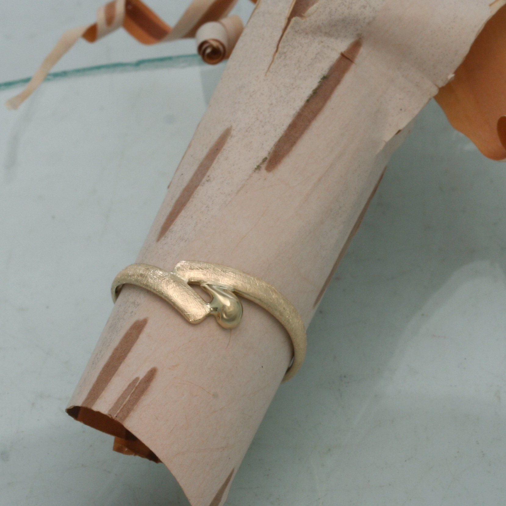 Wikkelring met twee draden. De draden zijn gemaakt van een trouwring.