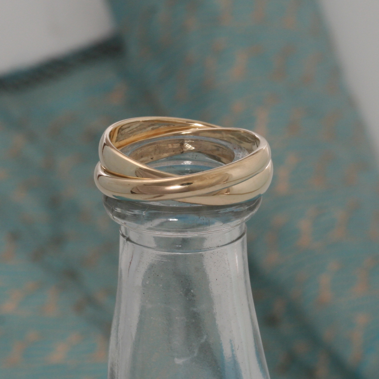 Twee trouwringen in elkaar gesoldeerd. Het idee van een Cartier-ring