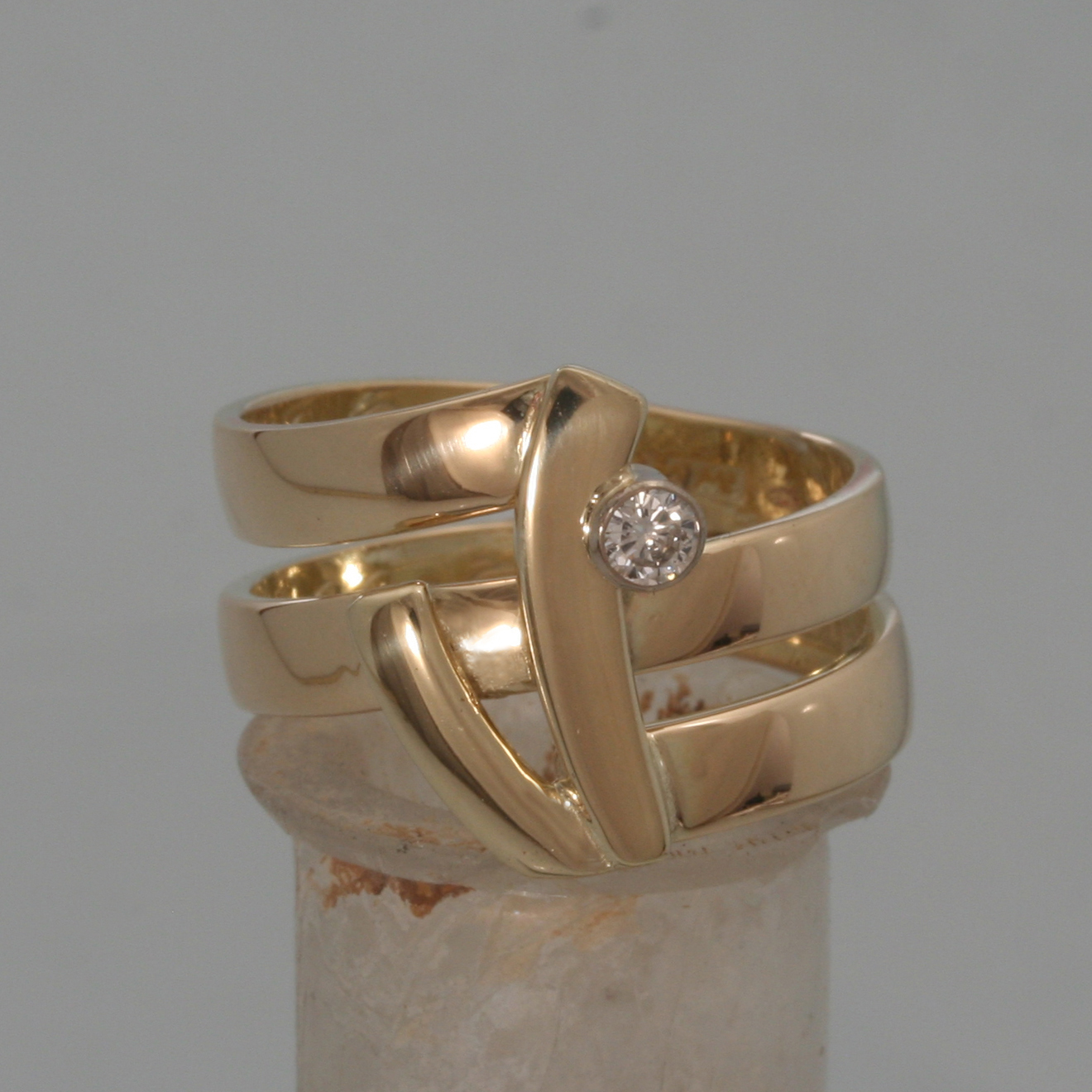 Een ring, gemaakt van twee trouwringen met briljant