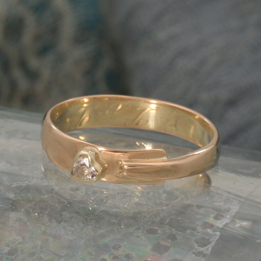 Een trouwringverandering met een hartvormige diamant.